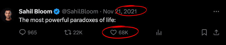 This was incredibly frustrating because I had bought the courses of all of the biggest creators.I was doing EXACTLY what they told me to do, but I simply wasn’t growing…So I decided to quit 𝕏 out of frustration...But 6 months later I logged in again.And I saw new people who were growing extremely fast.This growth helped them to build a $10k/mo income...And this is when I had an important insight:The opportunity was still enormous.The reason I failed before was that I used outdated strategies.Because what most people don’t know is that big creators grew back in 2021 when it was extremely easy to grow on 𝕏.You could write simple tweets and gain thousands of followers: