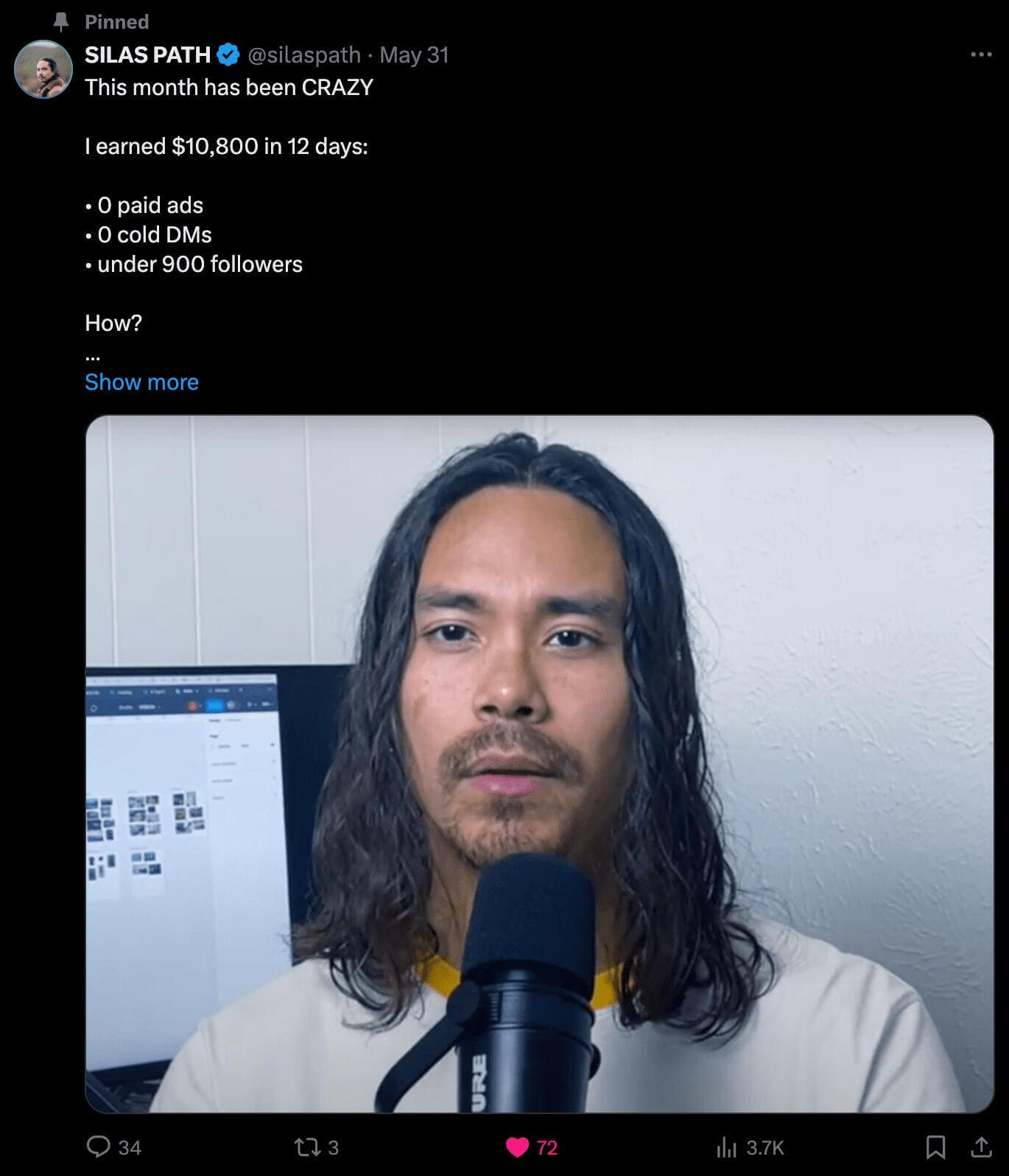 So unless you want to spend 4+ hours per day sending cold DMs and cold emails, you need to learn to write great content.This will allow you to build a personal brand that attracts like-minded people who want to learn and buy from you.You don't even need a big audience for this, you just need to have the right skillset.Once my client Silas learned this, he managed to hit his first $10,000 month at only 900 followers after we worked together for only a month.