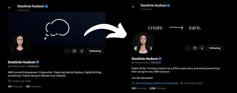 I've since then helped multiple creators to get similar results.They grew to 1000 followers faster than me.Destinie got to 1,000+ followers in less than 30 days.