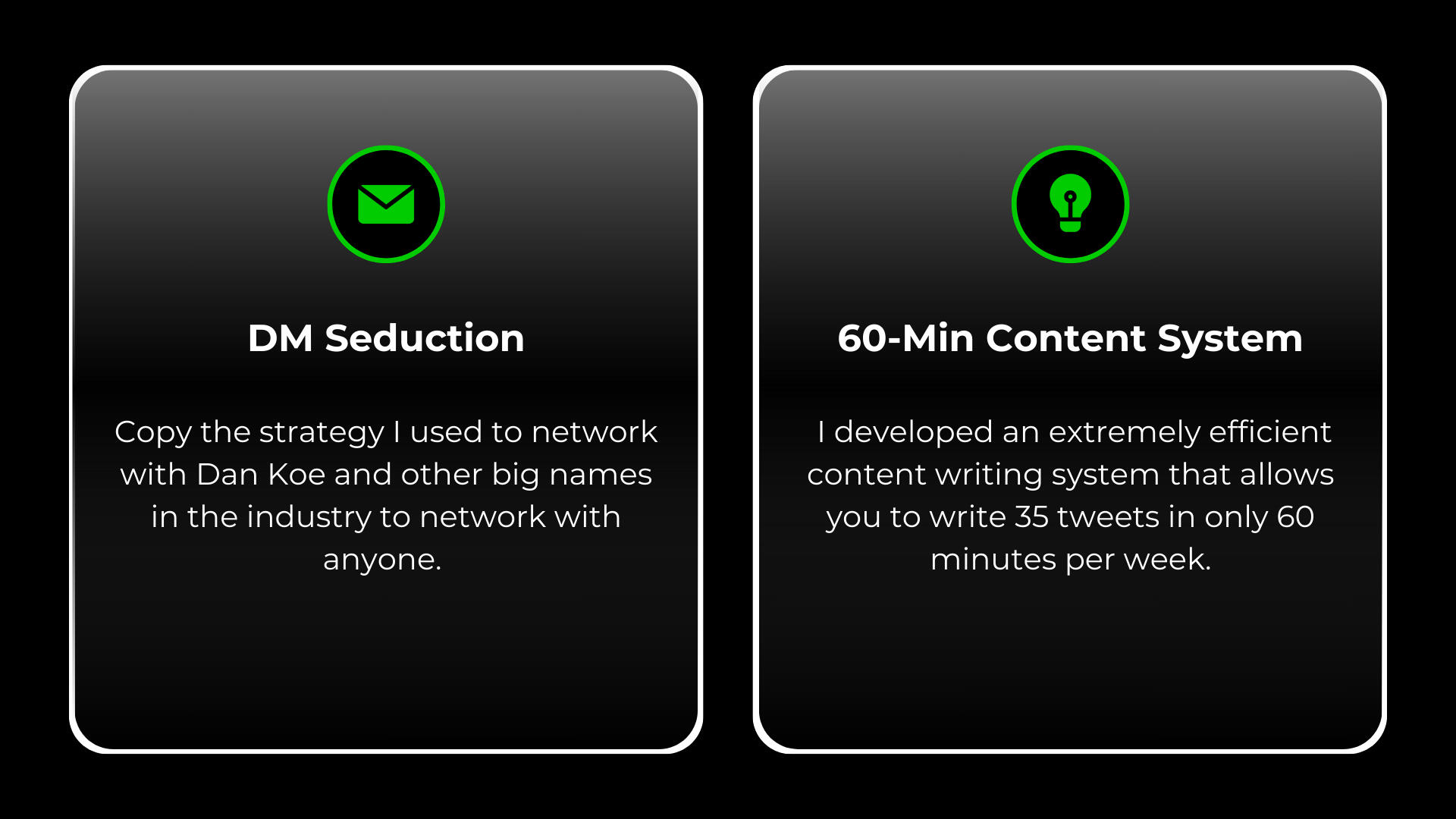 Use my proven system to gain 6-figures, +50K followers, and +10M monthly impressions all while working only 2 hours per day.