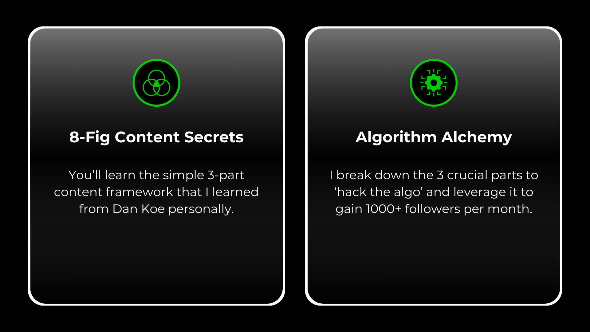 Clear gameplans of the highest leverage activities so you know exactly what you need to do to get to 10,000 followers and beyond.