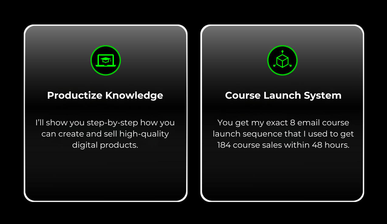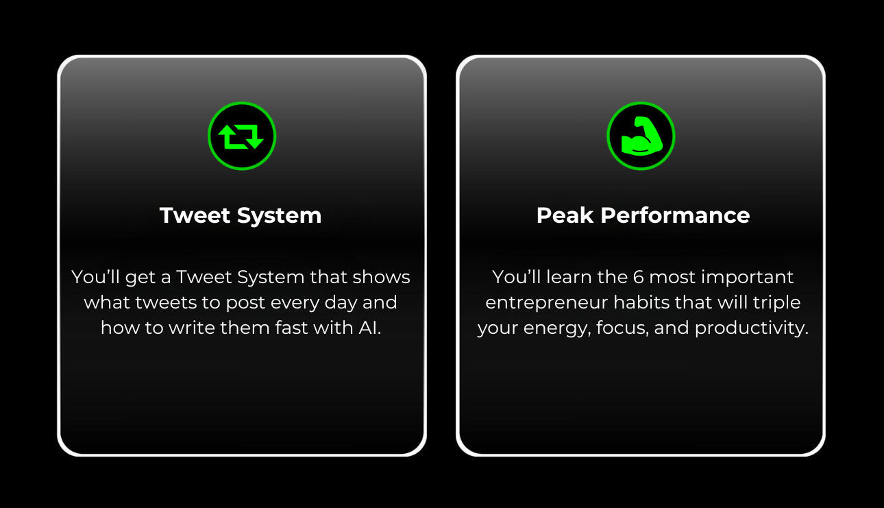 You won't get there overnight, but you get the exact system that helped me get there.With all my best growth, writing, and monetization strategies.If you already have an audience or an offer that's making money, then the X Growth System will amplify your results.Because remember: all you need is something to sell and people to sell it to.Something to sell = your offer and product or service.People to sell to = your audience and email subscribers.Once you have these two things, you can make as much money as you want (it becomes a simple numbers game).So here's what the X Growth System can do for you:1) Show you exactly how you can create and sell a high-quality offer and product or service.