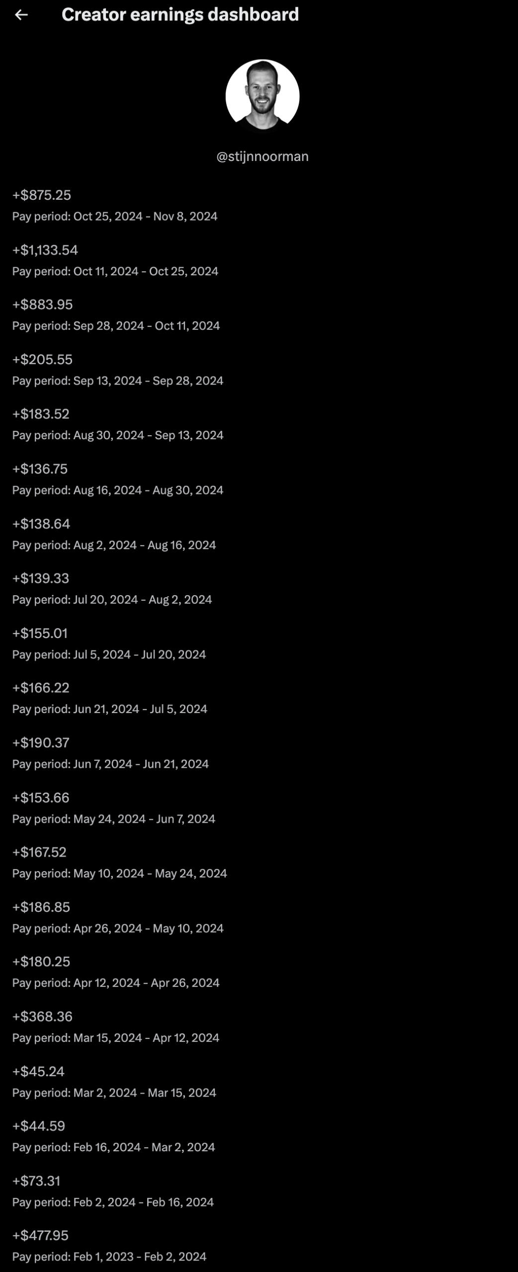 "Stijn is one of the most dedicated creators I've come across. I watched him document his journey from 0 to 14,000+ followers and $10k/mo.If you're interested in monetizing your mind, and you're introverted, this dude is one to check out."